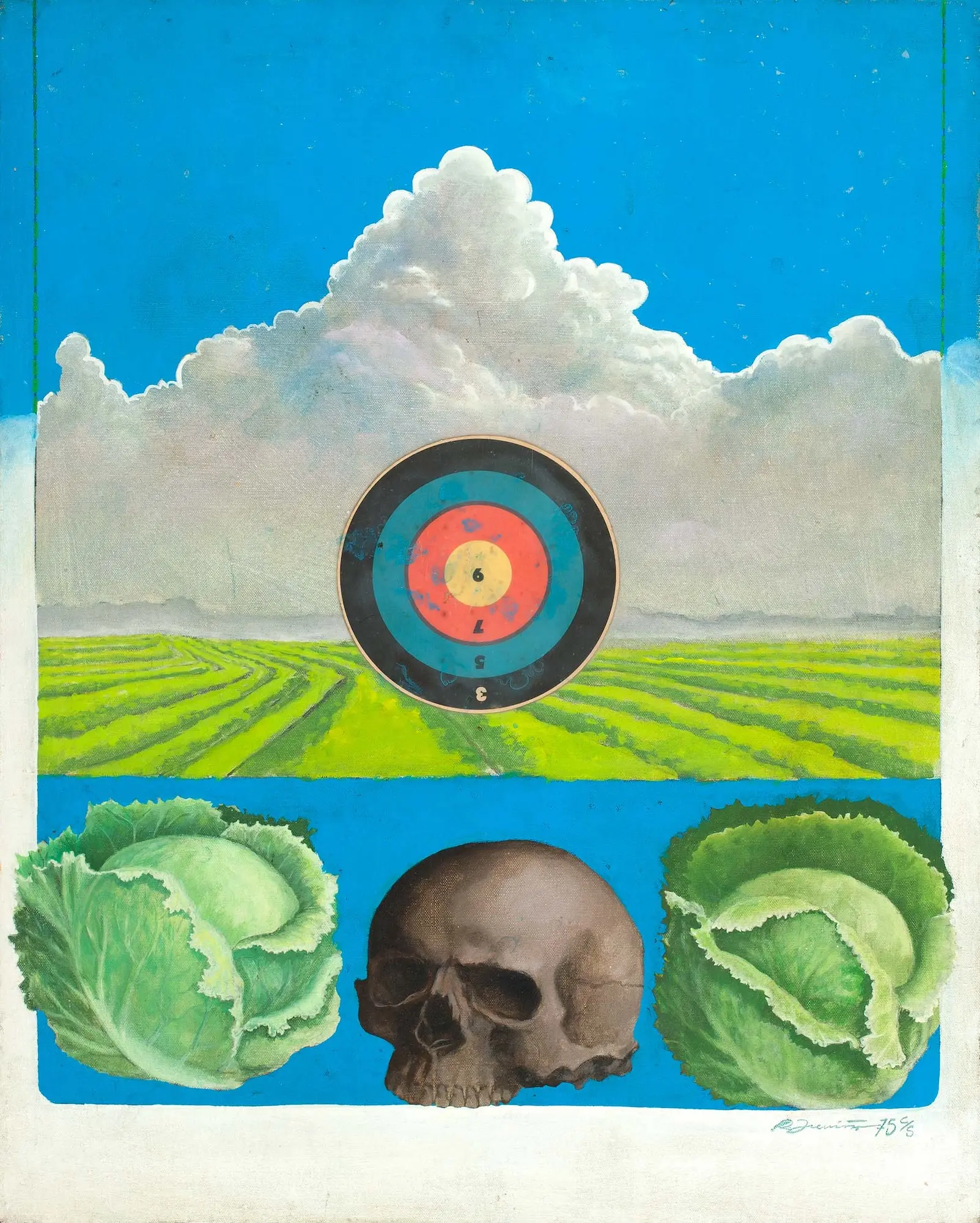 The artwork spans the 1970s, roughly the beginnings of El Movimiento, the Chicano Civil Rights Movement, to 2022. The pieces speak of discriminatory immigration practices, alienation within America, labour injustices, police violence, and the hopes and dreams of those migrating to a new home. For example, Rudy Treviño’s Lettuce Field with Target and Skullviscerally captures the plight of farmworkers whose bodies are used for their labour, and who are thwarted in their efforts to unionize in protest against their mistreatment.