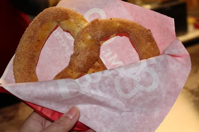 The smell of freshly baked pretzels is heavenly! At Mr. Pretzels (originating from Puerto Rico), you can watch the dough being hand-rolled. The soft pretzels, warm from the oven, are heavenly. Choose between the savoury salted version or the cinnamon sugar coating, if you’re feeling sweet.