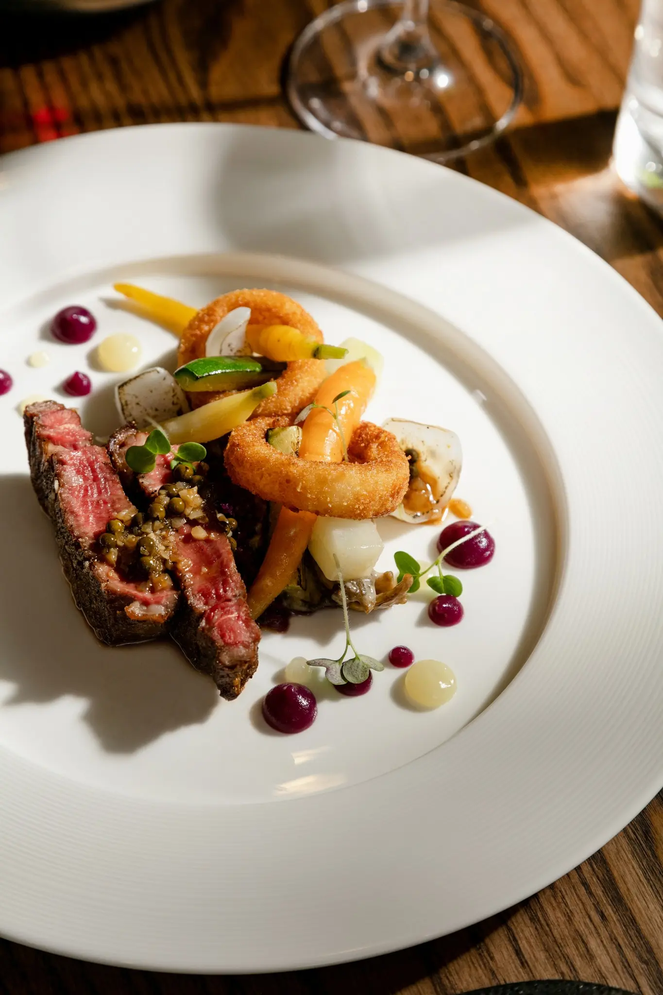 For a cosseting New Year’s Eve dinner, make a reservation at The Belgard Kitchen. The affordably priced menu ($65) involves a three-course menu featuring comfort food and wintry seasonal ingredients. The first course is a choice between beets three ways with goat cheese and candied walnuts; bison tartare; and mushroom toast. The second course is a hard decision between osso bucco, scallop risotto, and yam gnocchi with pork and lamb ragu; and finally, dessert is either carrot cake, chocolate and peanut butter bar, or sorbet. Vegetarian options are available, as well as additions such as whey roasted carrots or roasted cauliflower with Romanesco sauce.