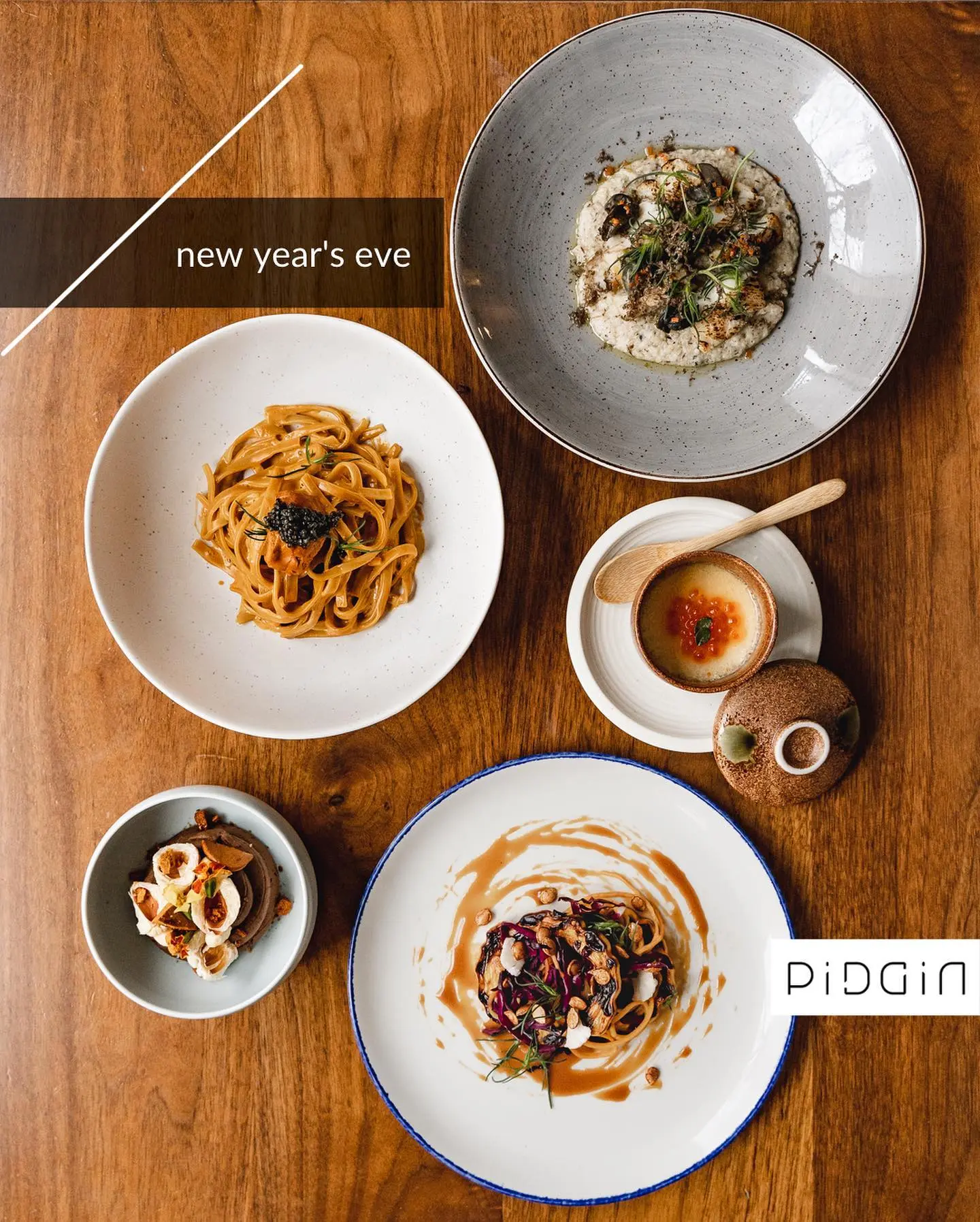 PiDGiN, which seamlessly melds Asian, West Coast, and French culinary influences, is hosting a very special seven-course New Year’s Eve dinner ($165 per person). The meal begins with wagyu tartare with sushi rice and nori and then includes courses such as matsutake chawanmushi, ikura, and kinome; uni tajarin with caviar and seagrass; and smoked halibut cheeks with snails, soft polenta, and shaved truffle. Chocolate mousse with freeze dried lychee ends the meal.