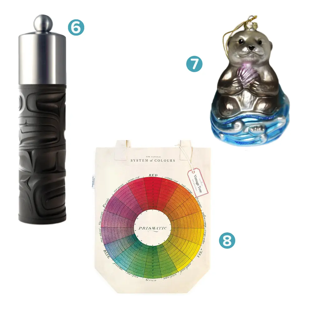 Designed by Coast Salish/Kwakwaka’wakw artist Maynard Johnny Jr, this mug displays an elegantly textured exterior with vibrant porcelain, the perfect way to perk up your home or office. Each mug comes boxed for easy travel and gift-giving. $15 | Museum of Vancouver