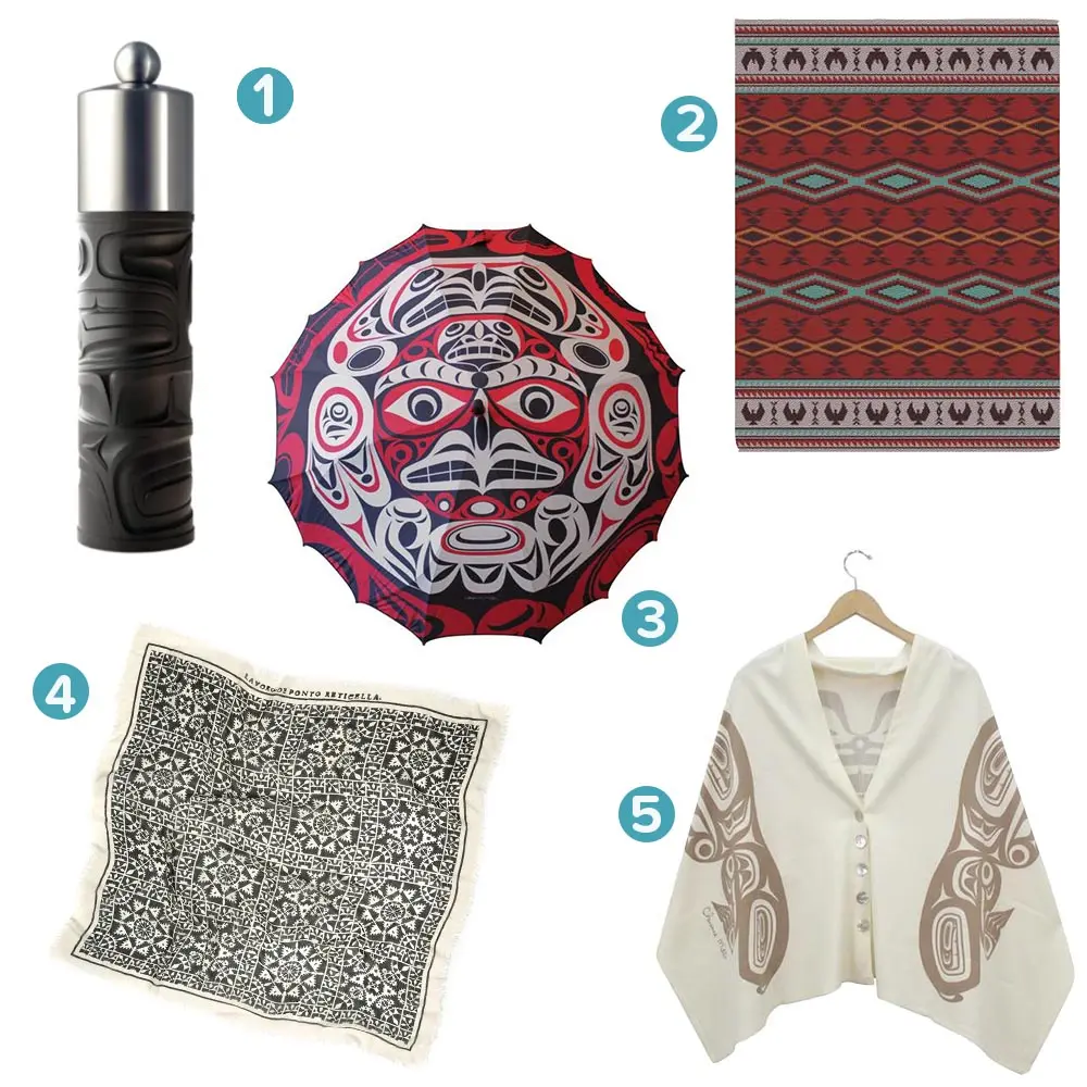 This cosy wrap is a wearable piece of original West Coast art designed by Haida artist Clarence Mills. The Bear is a symbol of strength and family and is always respected and treated as a high-ranking guest. $199 | Museum of Vancouver