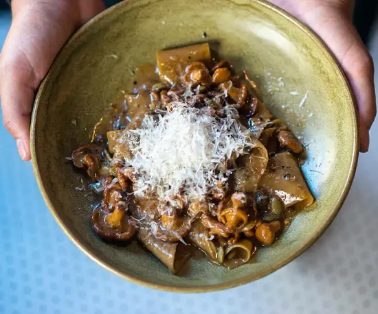 Be still my beating heart. The chanterelle pappardelle sings the earthly flavours of fall, with handmade pasta, foraged mushrooms, fresh sage, toasted pumpkin seeds, cabernet vinegar, and grana padana.
