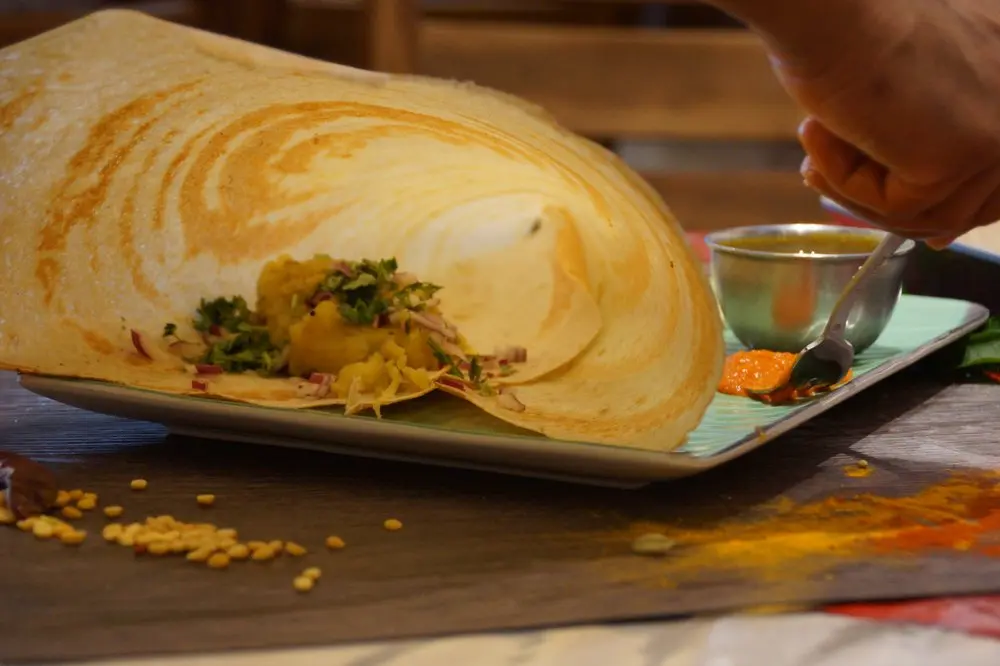 Dosas, a South Indian delicacy, are wonderfully showcased at Davie Dosa Company (1235 Davie Street) where owner Sharv Ramachandran will enthusiastically guide you through the bold flavours of South India. The dosa itself, a delicate savoury lentil and rice crêpe, is vegan (as well as gluten- and nut-free) and can be filled with a range of vegan ingredients, like curried cauliflower, eggplant, and spiced potato. The texture of this restaurant’s dosa, delicately crisp, perfectly complements the heartier, spiced fillings. The restaurant also offers some highly flavourful vegan curries, like one with chickpeas, or another with yellow lentils.