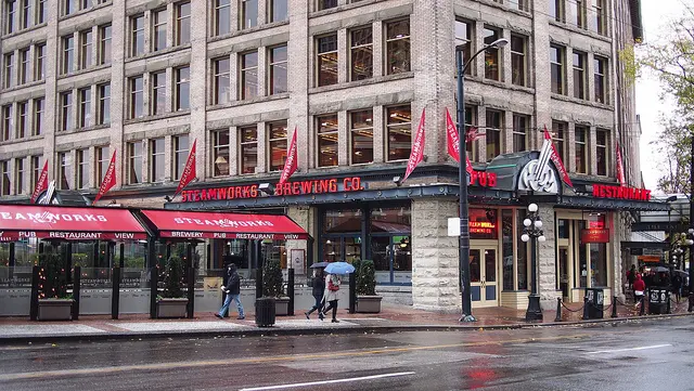 Steamworks has one of the larger covered patios in Downtown Vancouver. It’s a good spot to watch a football or hockey game, have brunch, or check out Happy Hour. They also have Canada’s only steam-powered brewery right on site, so be sure to enjoy one of their seasonal craft beer offerings.
