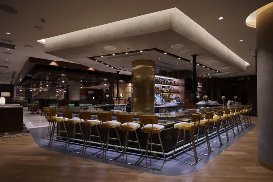 The menu offers updated classic North American steak and seafood selections, as well as sushi bar creations, with an emphasis on seasonal and local sourcing.