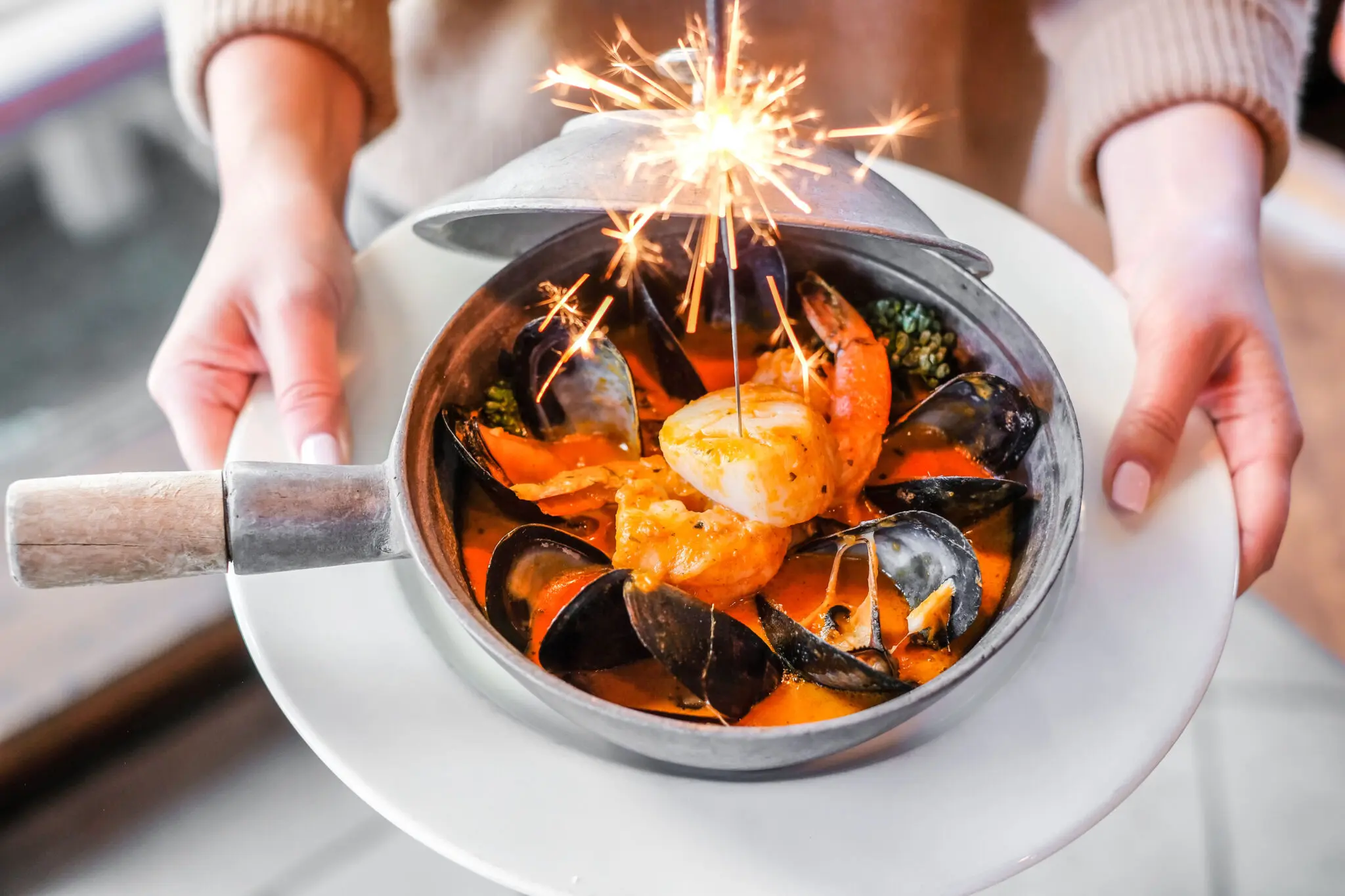 Curry’s history is complex and circuitous, tracing the movement of people, goods, and culture as a result of the spice trade, but it begins in India, with a stew made intensely flavourful with a variety of spices, like cumin and turmeric. Tasty Indian Bistro (1261 Hamilton Street) in Yaletown is a gorgeous space, with a golden colour palette and shimmering pendant lighting. The food matches the elegance of the décor, with a refined interpretation of classic dishes. Curry highlights include a lamb vindaloo, aromatic from freshly roasted cinnamon, cloves, and mustard seeds; prawns cooked with coconut cream and onion gravy; chicken tikka in a tomato gravy with a hint of coriander; and channa (chickpeas) masala. Sides, such as raita, chutney (mango, ranch, tamarind, and mint), and garlic naan, round out the meal.