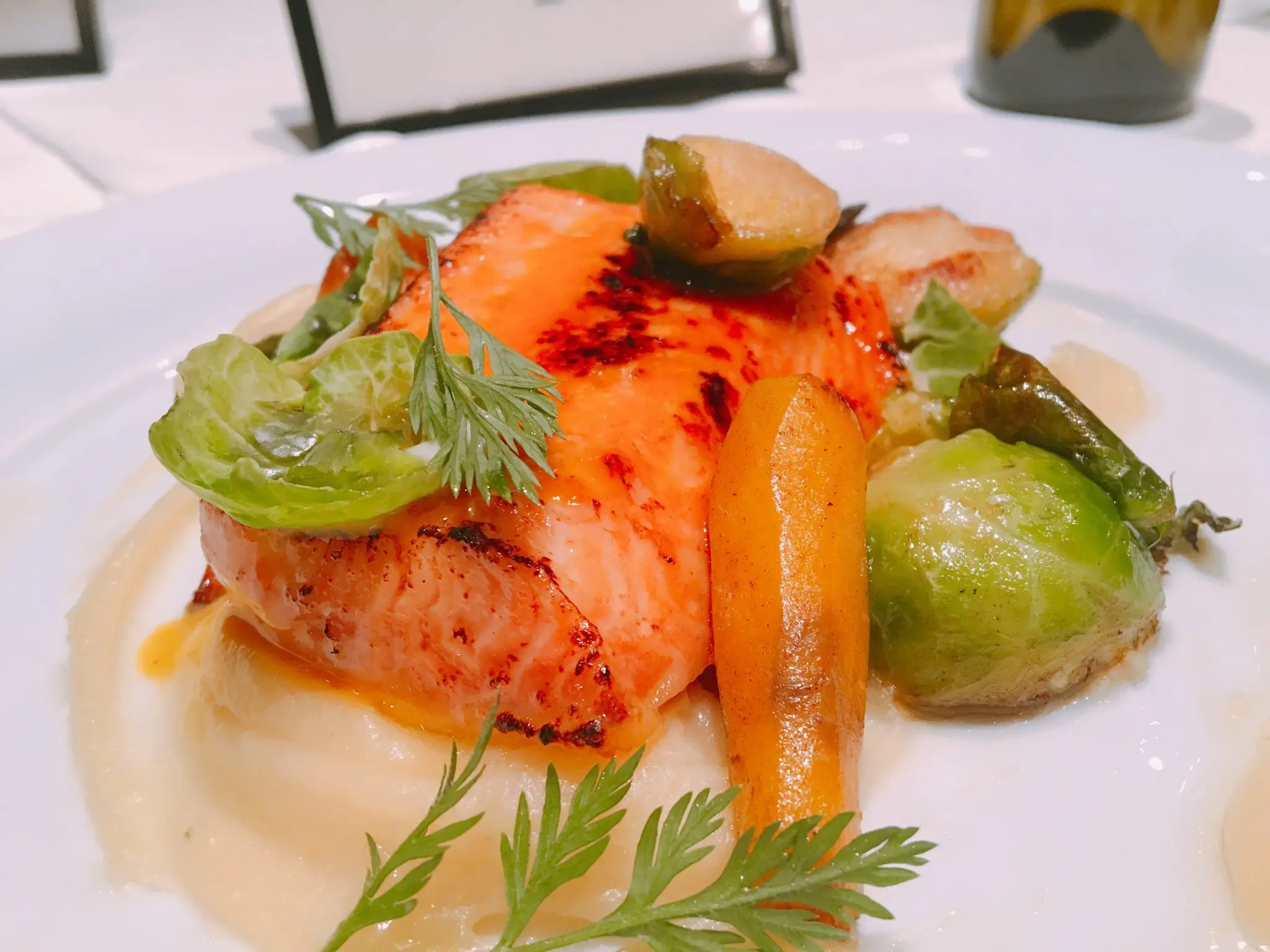 For mains, the choice is not easy with three excellent options that are all ideal for a cozy meal on a wintry night: tender white wine braised veal cheek with gnocchi romaine, charred broccolini, and apricot mostarda; a hot smoked hon shimeji mushroom and vegetarian lentil cassoulet with chickpea fritter, roasted parsnip, fried cauliflower, and romesco sauce; and smoked confit steelhead with roasted carrots and brussels sprouts, sweet potato purée, and maple orange syrup. The latter dish really showcases the delicate quality of the fish, alongside a seasonal use of vegetables. It’s a meeting of sea and earth.