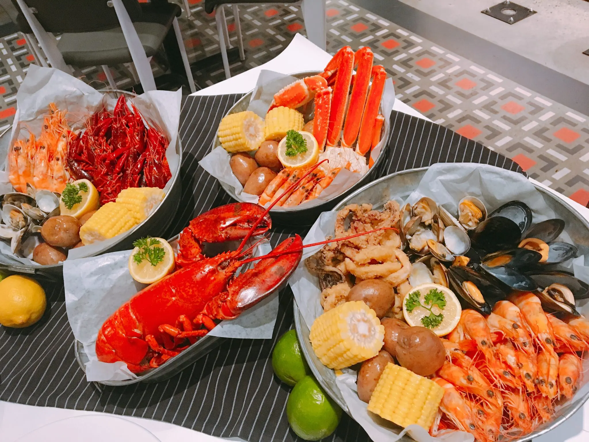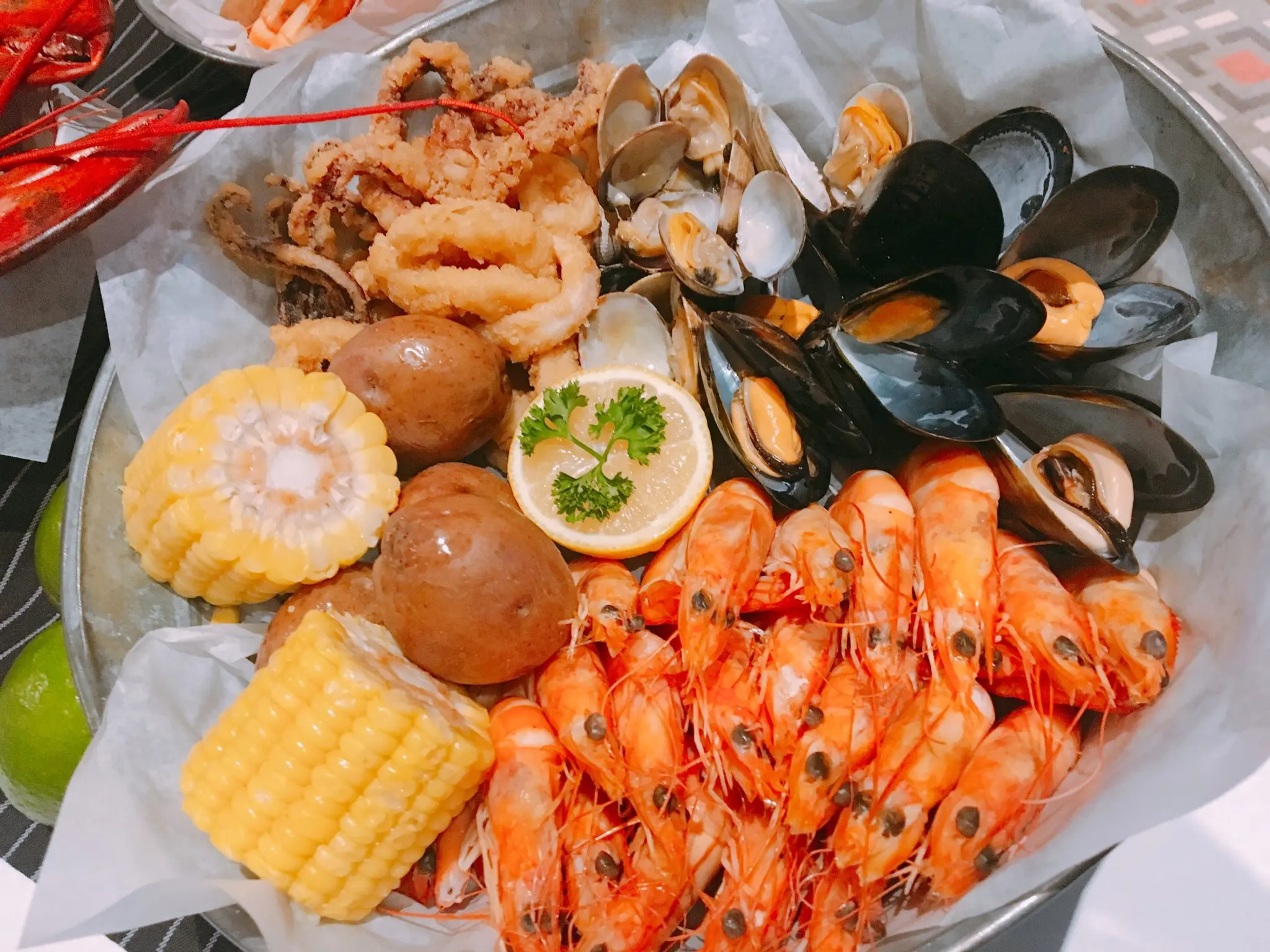 Next, pick one of the seafood combos: snow crab legs with shrimp, potatoes, and corn; crawfish with shrimp, clams, potatoes, and corn; or shrimp with clams, mussels, deep fried calamari, potatoes, and corn. There are a variety of substitutions that can be made for an additional price (e.g. Dungeness crab instead of the snow crab legs for an additional $35 for the first combo). You also get to choose the sauce for your seafood. I’m particularly partial to the signature Cajun sauce, which comes at a variety of heat levels and has spicy, savoury, sweet, and umami flavour notes, making it a wicked combination on the palate.