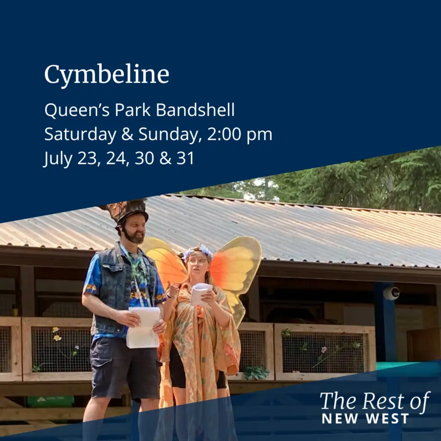 New Westminster has free performances of Shakespeare’s Cymbeline happening July 23, 24, 30, and 31 at the Queen’s Park Bandshell. Bench seating is available but will go fast so bring blankets and lawn chairs.
