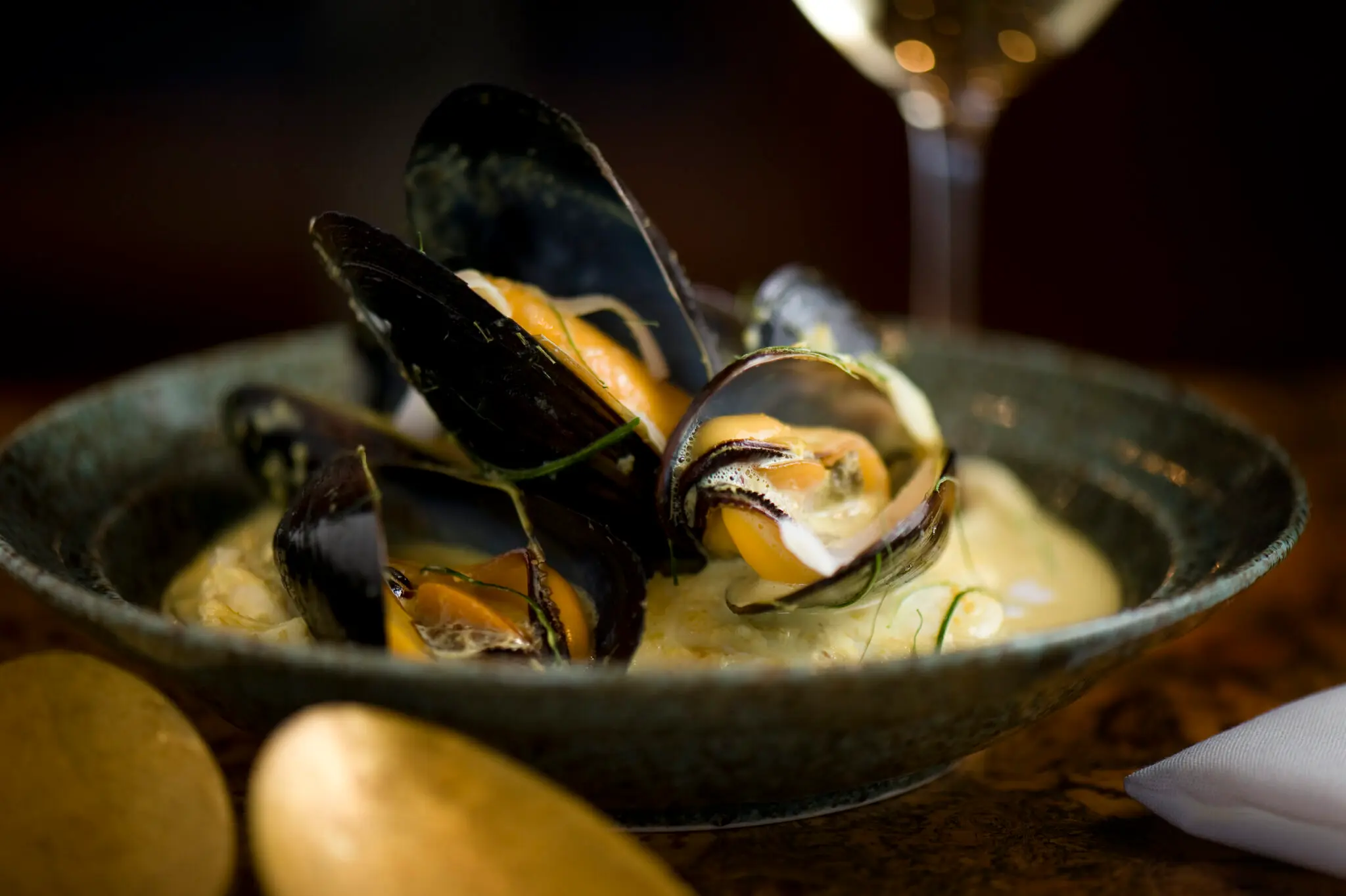 This long running downtown restaurant specializes in authentic Thai cuisine. Salathai (102-888 Burrard Street), a family-run establishment that first opened on Cambie Street in 1986, expertly prepares central Thai dishes that are elegant and flavourful. Tom yum soup (hot and sour broth with mushrooms, fresh lemongrass, lime leaf, and your choice of protein) makes for a soothing winter starter, followed by golden angel wings (boneless chicken wings stuffed with pork, shrimp, vegetables, vermicelli, and herbs and served with homemade sweet chili sauce and ground peanuts). Curries include the gaeng dang, a red curry with bamboo shoots, bell peppers, and Thai basil leaves with your choice of chicken, beef, or pork. Other standout dishes are the swimming rama (lightly sautéed spinach topped with sliced chicken and homemade peanut sauce) and the pad see-iew (stir-fried wide rice noodles in soy sauce with broccoli, egg, and black pepper). End with a deep-fried banana with homemade coconut ice cream.