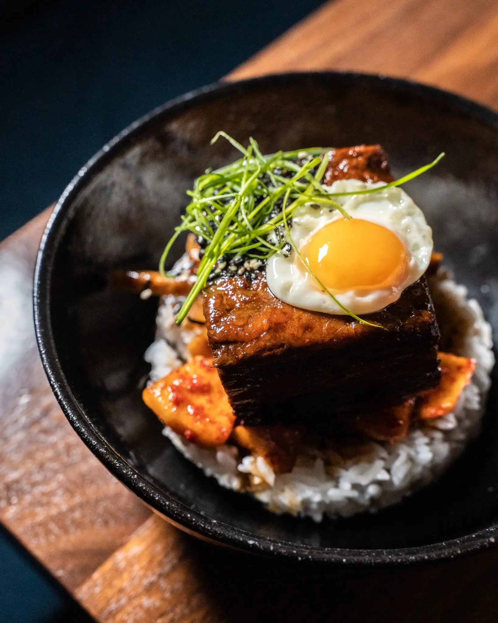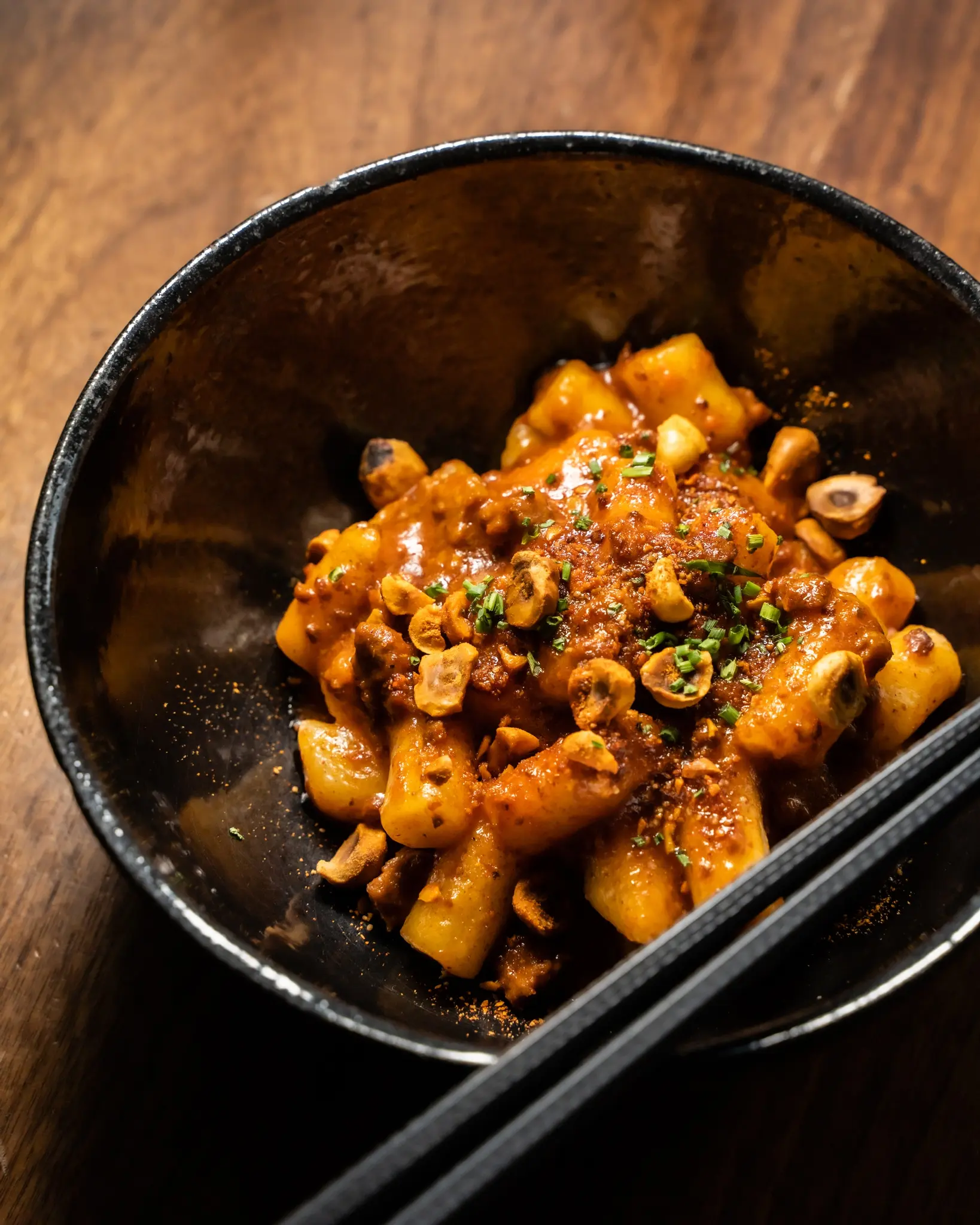 One of the restaurant’s most enduringly popular dishes brings together Korean and Italian elements to celebrate the rustic elements of both cuisines. “We all know spaghetti bolognese. We all know gnocchi. These are two super approachable and comforting dishes for our North American palate,” says Young. Korean rice cakes stand in place of gnocchi, while the slow cooked bolognese is amped in flavour with gochujung (Korean chili paste). The dish is finished with toasted hazelnuts dusted with hondashi (instant bonito fish stock) and paprika for a final umami flavour bomb.