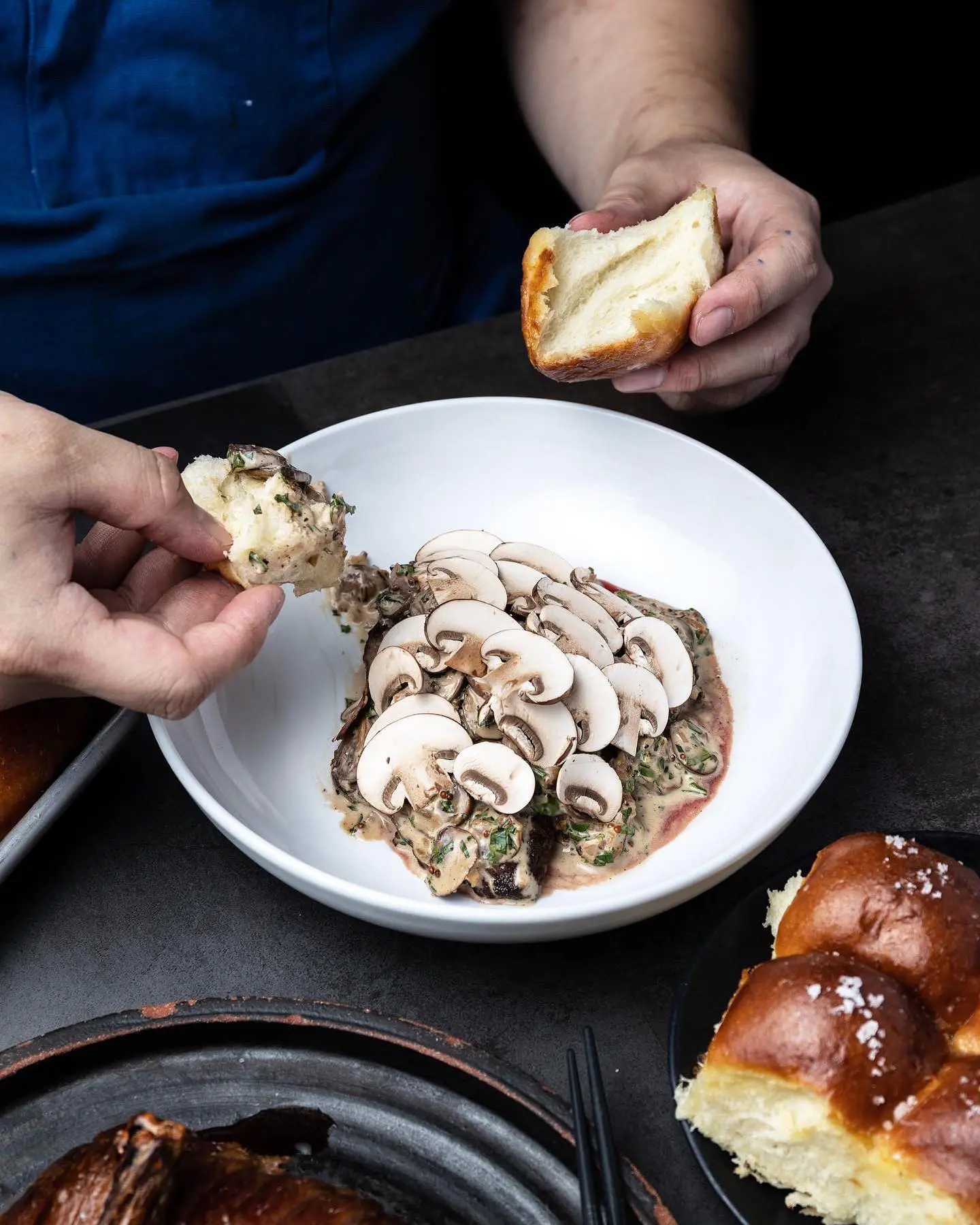Torafuku also does a take on Steak Diane, with Cache Creek picanha (sirloin cap) oven roasted, and served with a brandy Worcestershire sauce with tarragon, parsley, thyme, and mixed mushrooms, such as shiitake. The steak is accompanied by a Japanese milk bun (pain au lait), which is made in-house. “It got really popular in Taiwan a couple year ago,” says Kuan. Kuan wanted the milk bun to be eaten with the Steak Diane to add a Taiwanese twist to what, on the surface, appears like a classic Western dish.