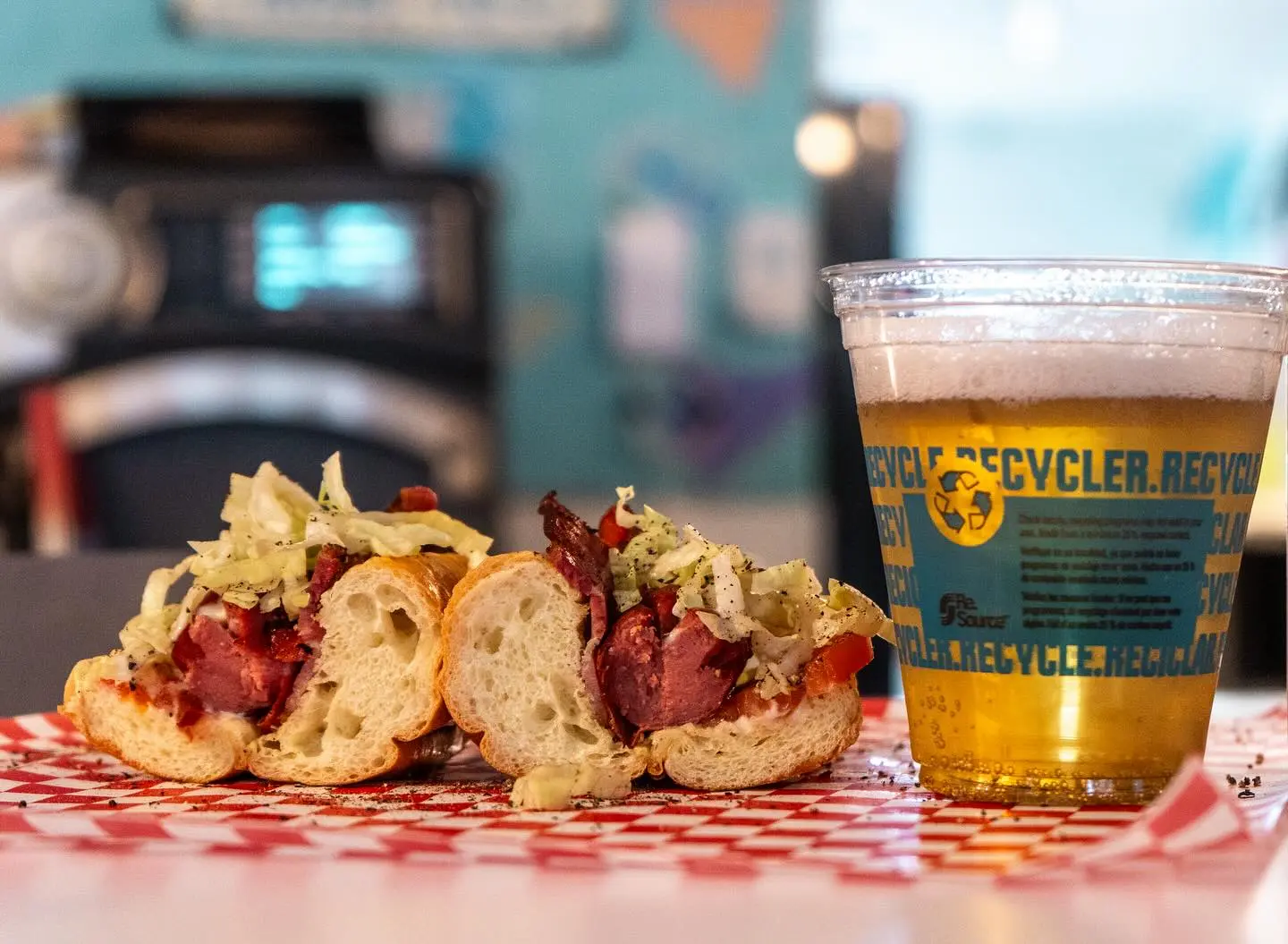 Due to the success of their bottled cocktails, Please Beverage Co. opened a brick-and-mortar location where you can enjoy their drinks, as well as small plates like falafel. On sunny days, grab a seat on their curb-side patio; they also roll up their front garage door so they whole place is airy. In addition to the North Point non-alcoholic pale ale, they also have refreshing zero-proof drinks, like the mango cucumber mule, which contains mango puree, muddled cucumber, Dickie’s ginger beer, and soda.