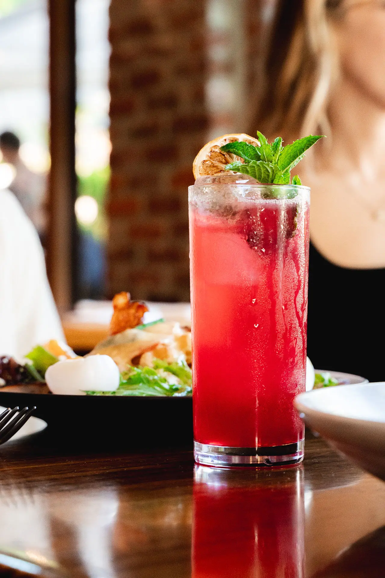 If you’re looking to sip mocktails on the North Shore, visit West Vancouver’s Mèreon, a French bistro that opened at the beginning of this year. Think classic French fare with some West Coast influences in dishes like French onion soup, tuna tartare, moules frites, and steak au poivre. The drink list encompasses classic and signature cocktails, in addition to a few mocktail creations, like the Pineapple Tarragon; Cucumber Sage Lime; and the Vanilla Lavender. The latter is a blending of butterfly pea flower-infused Seedlip Grove 42, golden vanilla lavender cordial, martini floreale, and lemon juice.