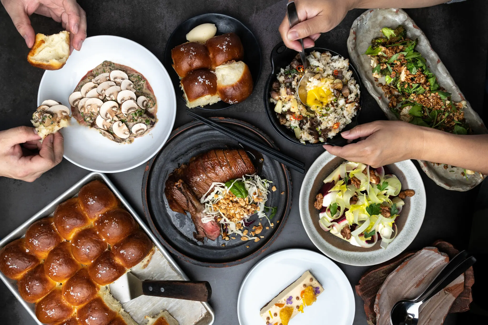 Another option is their Freebird Fall Feast ($70, feeds 2-3 people), which comes with a salt-cured roast chicken done Asian-style, crispy sticky rice, and pumpkin mor kaeng custard with cranberry compote. Book dine-in and take-out in advance. All Thanksgiving meals are available October 5 to 10.