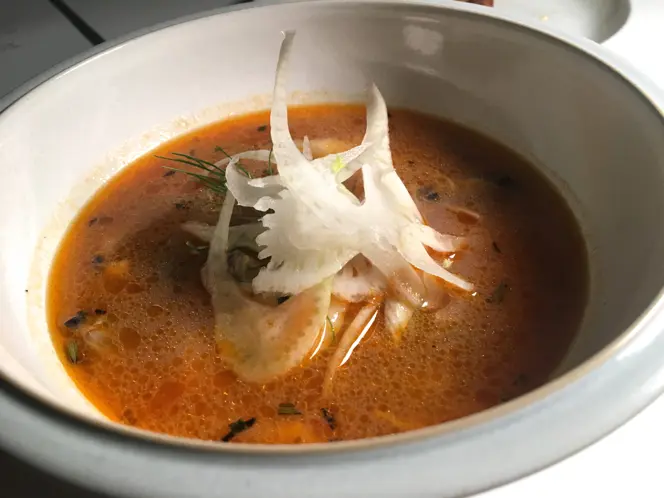 The Dine Out menu ($45) is equally as impressive. The amusebouche is an earthy mushroom and black truffle duxelle. You then can choosebetween a seafood soup with prawns, mussels, and clams or a beet and chevresalad.