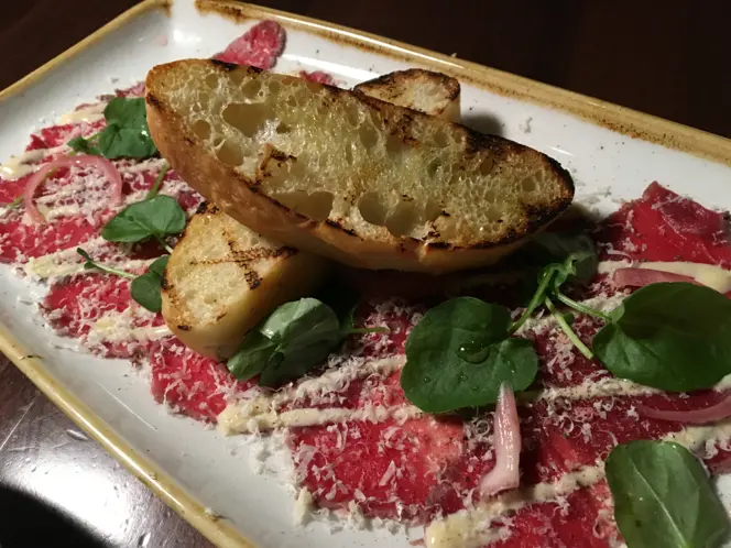 You will definitely leave the restaurant satisfied and veryfull. The appetizer choices are creamy butternut squash coconut curry soup;Dungeneses crab and baby shrimp cake with pickled fennel salad, lemon and dillaioli; and venison carpaccio with watercress, parmesan, and horseradish. Whilethey were all excellent, the latter was perfectly executed. Don’t forget tosample the accompanying grilled bread.