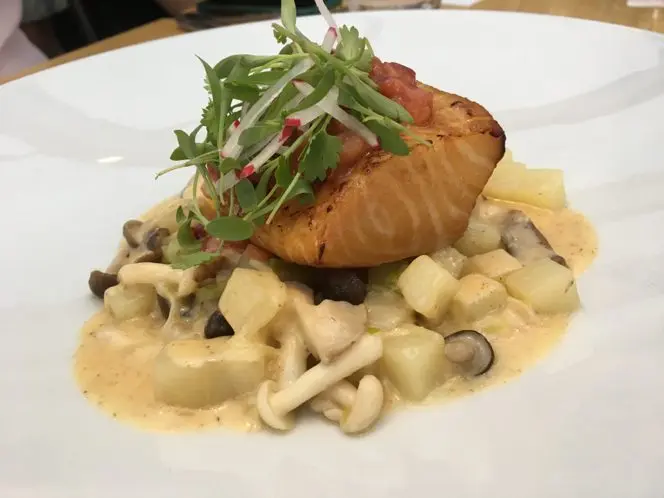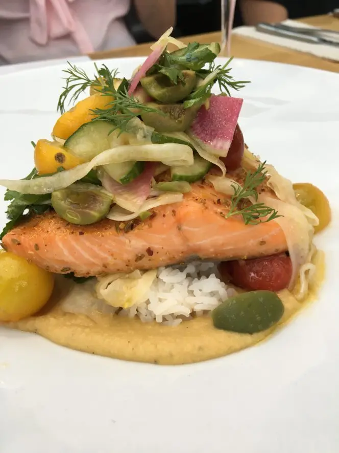 Lois Lake steelhead with cucumber, baby gem tomatoes, green olives, shaved fennel, basil, dill, and hummus really evidences the restaurant chain’s commitment to local and sustainable ingredients. There’s great vibrant freshness to this dish.