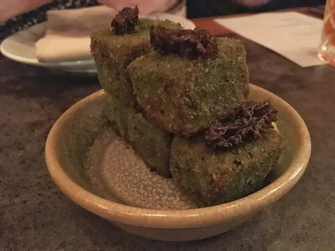 Do start with the “Loose Morels” cocktail (great pun, even better drink), which (get this) consists of goose fat-washed Calvados, morel agrodolce, and aromatic bitters. The goose-fat isn’t overwhelming, but definitely present, giving the drink an added smoothness and depth. Who knew fat could help a drink go down even easier?