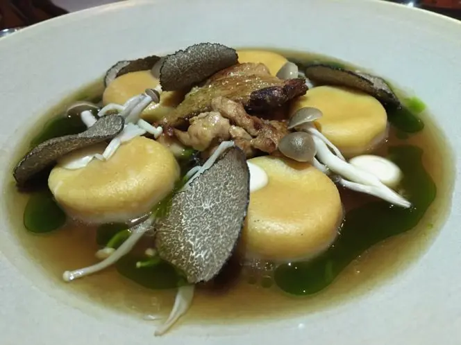 The goat and lamb kromeski are a good nibble to start, highlighting the stronger flavours and textures of the game meat, balanced by the slight tang of pickled morels and tarragon aioli.