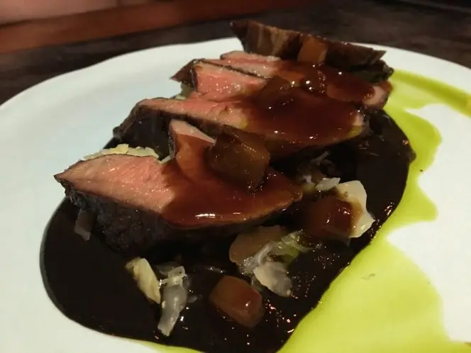 The dessert is the most surprising culinary feat, consisting of Alba truffle ganache with smoked boar drippings, 74% dark chocolate, and espresso, served with porcini ice cream and meringue. The combo of ingredients on paper may not seem intuitive, but it all comes together in an interesting autumnal meeting of sweet, savoury, bitter, and earthy. It’s a great finish to Wildebeest’s two week celebration of game and mushrooms.