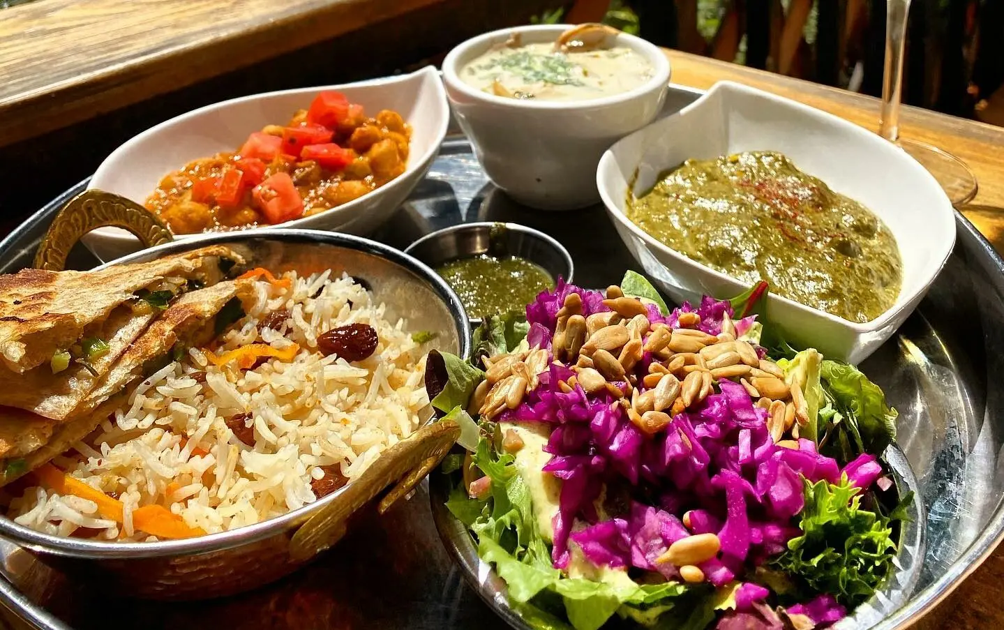 Anybody who’s travelled along the ancient silk road will know of the quaint dhabbas (eateries) that have served adventurous travellers through the centuries. Today, these dhabba’s have transformed into charming little street vendors that dot the silk road from Mongolia through Tibet, India, Persia, to Istanbul. East is East captures the vibrant energy of these charming dhabbas that represent the beauty and diverse flavours of this ancient region. On the menu, you’ll find dishes such as alu gobi (Cauliflower and potato in a tangy tomato coconut sauce), ango butternut squash (Butternut squash and mango cooked with coconut milk, ginger, nutmeg, cinnamon and curry leaves), creamy mushroom and eggplant, plus Eastern roti rolls and rice bowls.