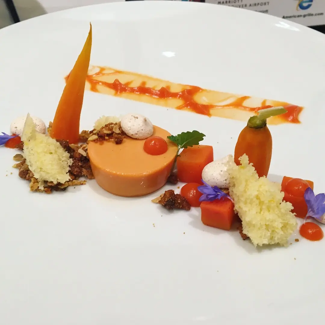 One of the desserts was a play on carrot textures with carrot and yogurt panna cotta, sponge cake, carrot fluid gel, candied carrots, carrot cake crumble, and charred lemon meringue.