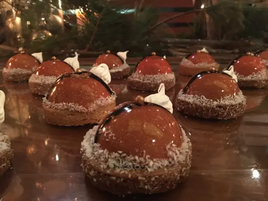 3. YEW seafood + bar (Four Seasons Hotel Vancouver, 791 West Georgia Street) always does the holidays (and its baking) beautifully. This year, their Christmas menus (December 24th dinner and 25th brunch buffet) feature a whimsical Santa’s Belly, a combination of silky mousse and orange confit atop a gingerbread sablé cookie. The Christmas Day brunch buffet will offer a wide array of goodies from the bakeshop, like Christmas wreath tarts, Christmas cookies, and, of course, Gerhard’s stollen. Their famous stollen can also be purchased for $27 per loaf at the restaurant.