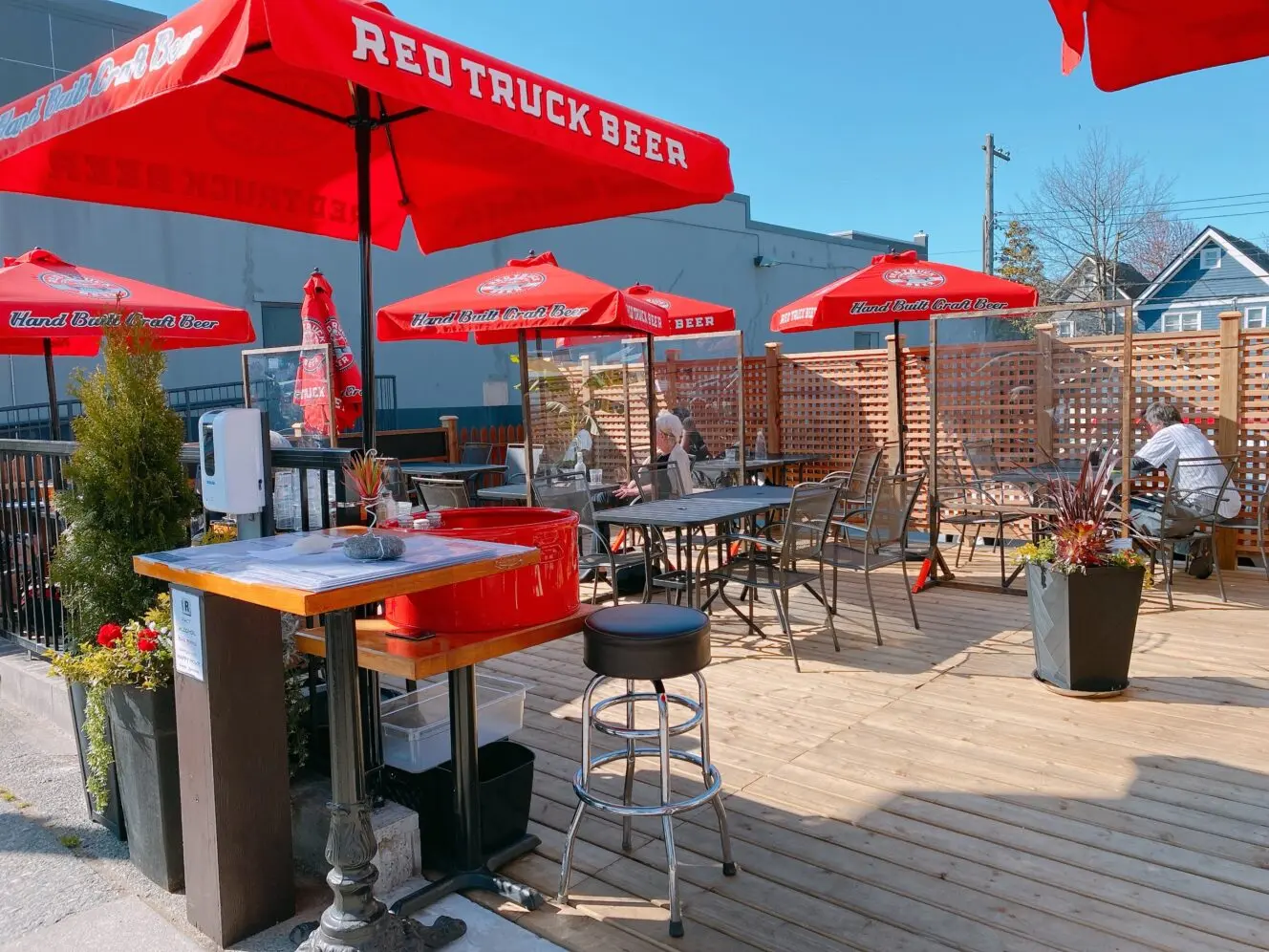 Located in the heart of Stanley Park, this convivial brewpub makes for a great brunch or casual hang out with some pals. There is no shortage of patio space at Stanley Park Brewing Restaurant & Brewpub with three patios to choose from. On either side of the brewpub, you can enjoy brews and bites on their covered patios, or at ground level they have picnic benches with umbrellas so that you can be more immersed in the park. Go for a beer flight and nosh on casual bites like spicy maple pork belly, crispy mushroom ‘calamari,’ or a beer brined hot chicken sandwich.