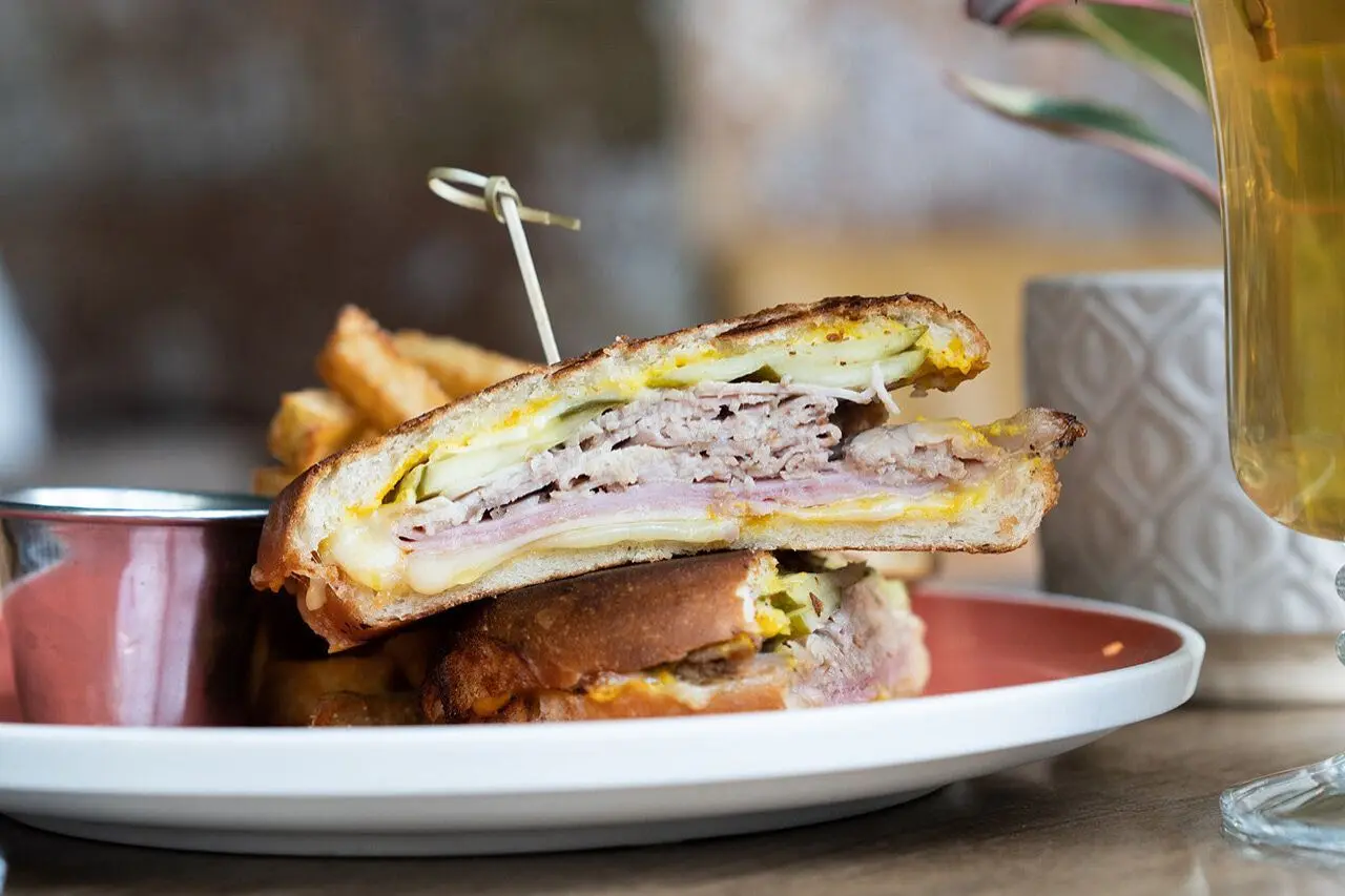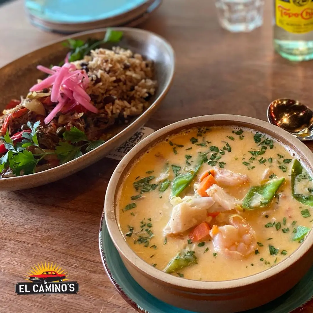El Camino’s celebrates pan-Latin American cuisine, such as a variety of tacos like slow cooked pork shoulder (carnitas) with avocado, salsa verde, and chicharrones. They include some Cuban (American) specialities, such as ropa vieja, a shredded beef stew with bell peppers, onions, capers, and olives, served with cumin rice; as well as a Cubano sandwich with roasted pork, smoked ham, Swiss cheese, pickle, chipotle Dijon on baguette, served with salsa and tortilla chips.