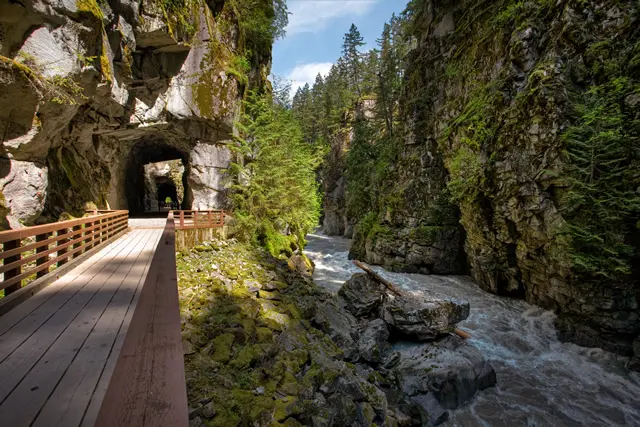 Head to the Othello Tunnels in Hope to combine history with scenery on a kid-friendly hike. The trail takes you through a series of former railway tunnels above the rushing Coquihalla River. Although the tunnels are short, you may want to bring a flashlight to reassure little ones who are afraid of the dark. Get more info on the BC Parks website.