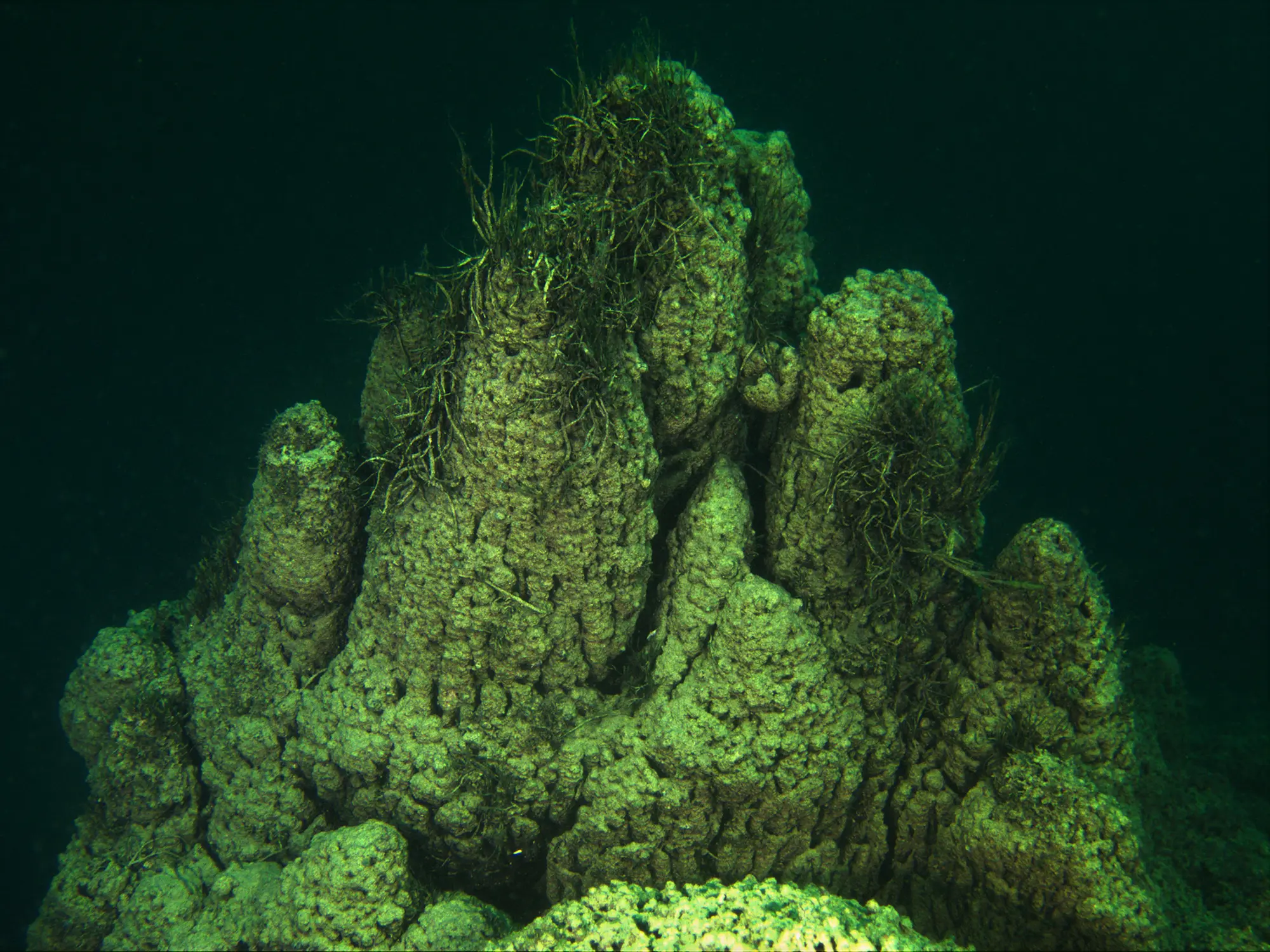 We found microbialites of various shapes and sizes at a depth of 20 to 30 meters. Bottom times for both dives were 50-55 minutes. The structures were fascinating to look at and visibility was great.