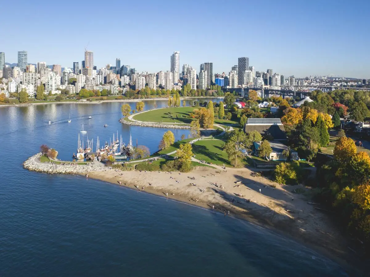 The long stretch of Spanish Banks Beach on the west side of Vancouver has incredible views of the city and the North Shore Mountains. Dogs must be on-leash on the waterfront pathway, but there is a large off-leash area and beach at the west end of the park.