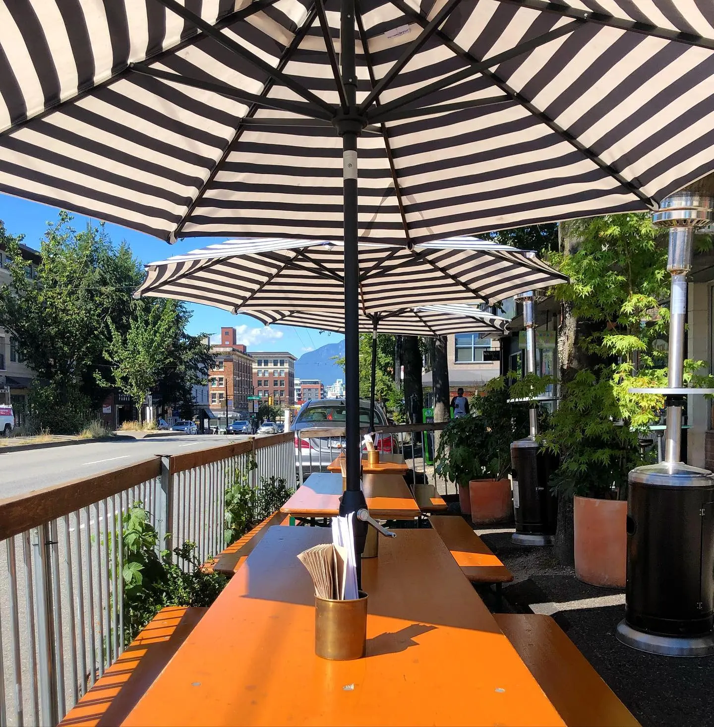 One of the most impressive and expansive patios in Mount Pleasant is found at Steamworks. The patio is covered and always really warm, with a wide variety of seating options, including high tops and regular four-tops. The eating and drinking are easy at Steamworks with 10 rotating guest taps as well as Steamworks classics and special brews. The food menu features casual favourites like smashed cheeseburgers and brisket tacos.