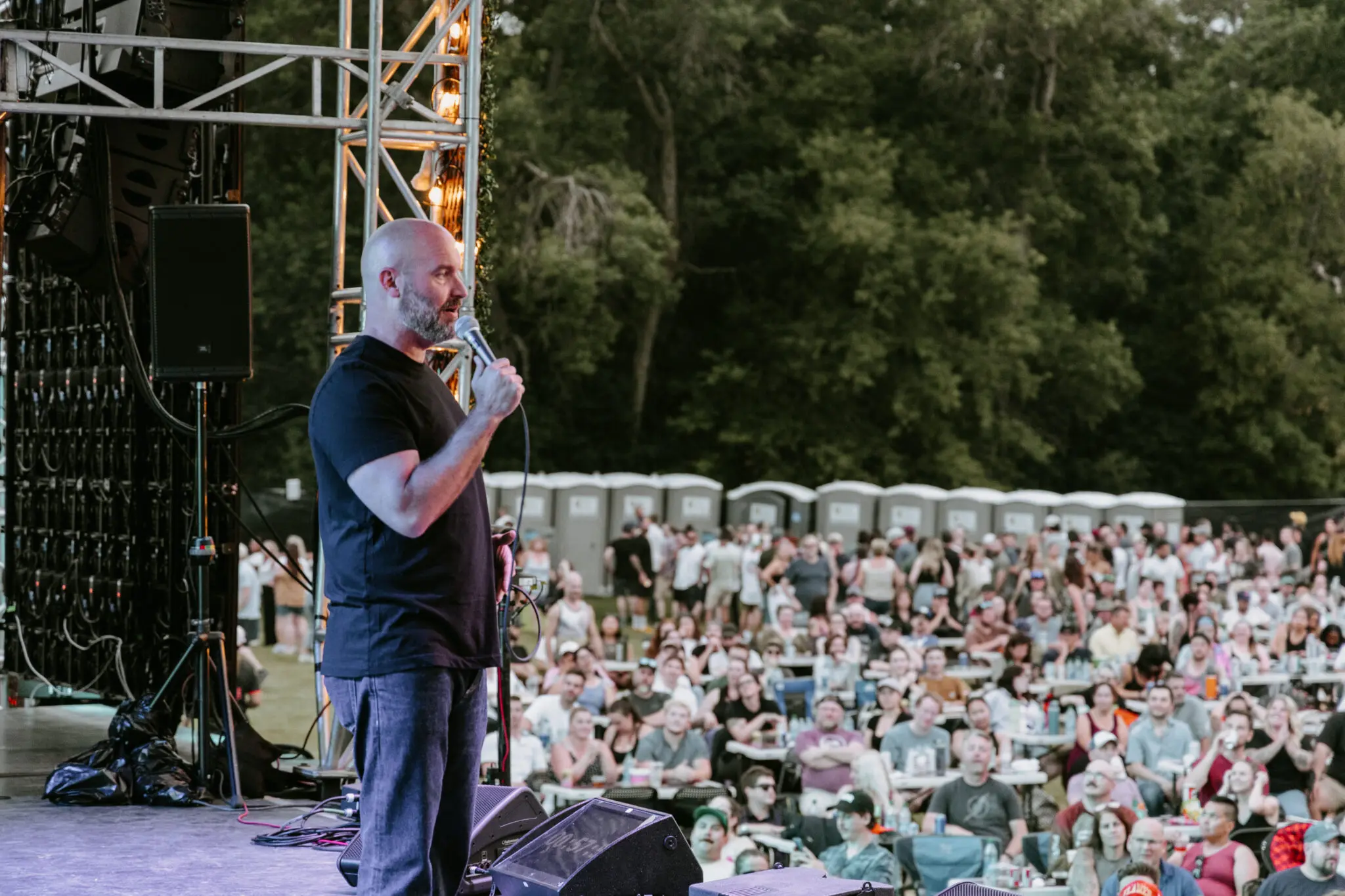 Outdoors in the late summer and surrounded by one of the great parks makes for one of the more unique and exciting venues to take in live entertainment like stand-up comedy under the night sky in a relaxing atmosphere.