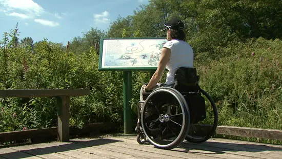 Hiking definitely requires full mobility, or maybe it doesn’t! Recently, while exploring the delightful network of pathways in Sunnyside Acres Urban Forest, I came to a junction at the Wally Ross Trail. Immediately I noticed the Obstacle Free Trail sign. Intrigued, I ventured out along the boardwalk, deeper into the forest. Created as a universal access trail and specifically for users who may have varying physical abilities the Wally Ross route provides relatively safe access for all. How fantastic; a nature trail designed to be navigated independently by those who may be wheel-chair bound. Nature for everyone! Curious, I wondered how many other local trails were constructed with accessibility in mind.