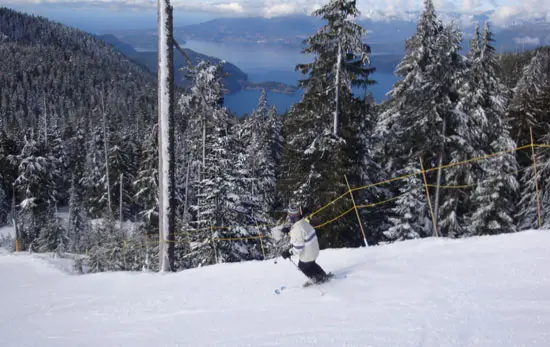 It never fails to take my breath away! Every time I leave sea level and venture out to the North Shore Mountains I feel invigorated. Perhaps, the feeling is amplified while alpine skiing. On those perfect days, the sun shines brightly; the air is crisp and the snow sparkles. As I raise the chairlift safety bar, lift my ski tips and prepare to unload, a sheer sense of joy comes over me. Moving away quickly from the unloading area, I begin to anticipate the views, and they never disappoint! Imagine panoramic ocean and city views all from the top of a snow-covered alpine run. Awe-inspiring and breathtaking!