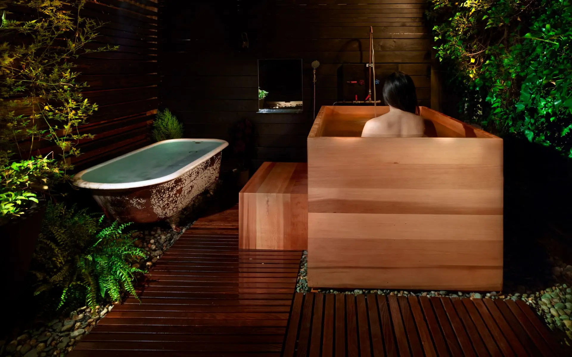 If you want to go further afield for a wilderness spa adventure, you can take the short ferry to Bowen Island and stay at Kitoki Inn’s zen-like cabins in the woods. The covered outdoor bathhouse, drawing from Japanese onsen tradition, contains a hot tub, a hot and cold hydrotherapy shower, and a garden with a wood fireplace. The bathhouse is available to inn guests who can book two private 90 minute sessions per day.