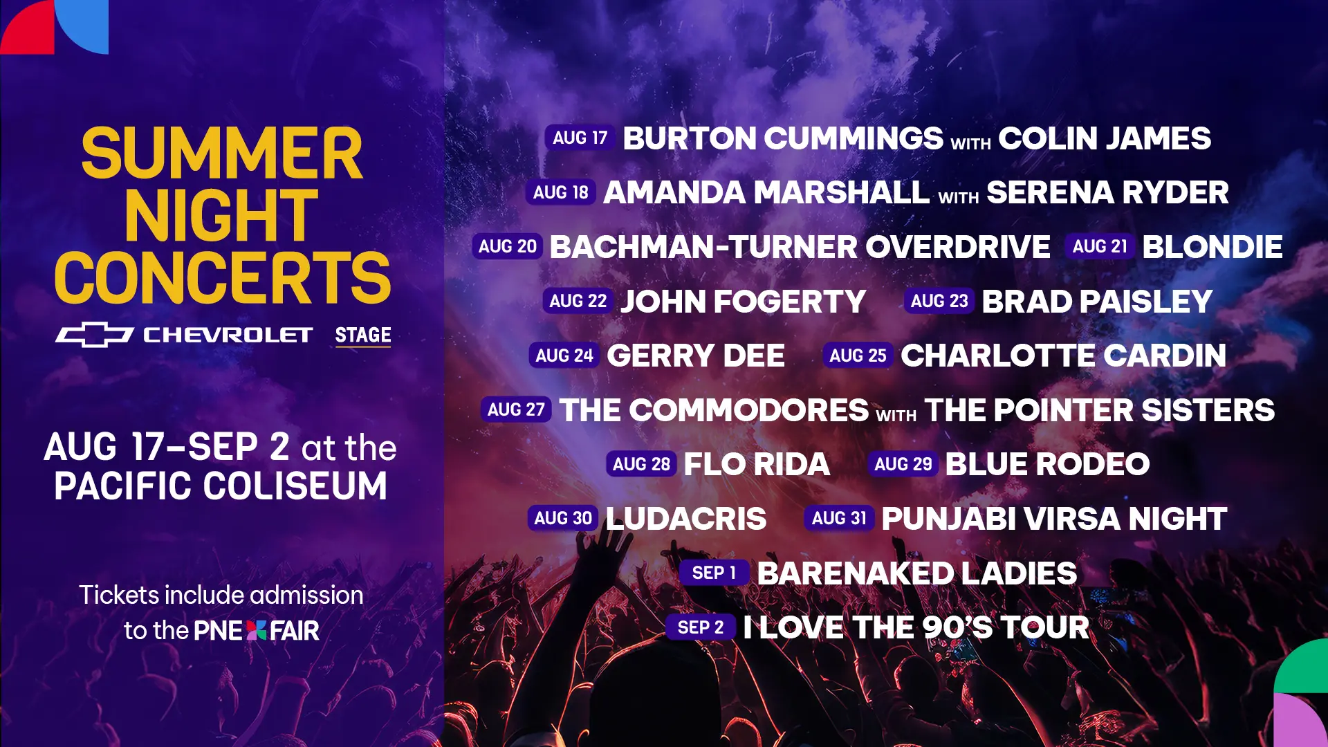 PNE Fair attendees will also get to see some great live music performances from a wide array of seasoned acts and crowd favourites at the Pacific Coliseum from August 17 to September 2.