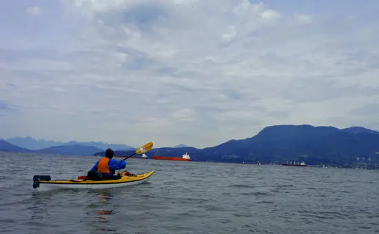 Perspectives are challenged on the water. Although part of the hustle and bustle of the city, while on the ocean, you are at the same time one step removed. Peace and serenity abound. With each stroke of the paddle, you control your own, individual path, and as the tide swings, your view shifts. The shoreline scenery changes dramatically over the span of a few hours, as the tidal flow in English Bay is substantial. Calmness prevails and time seems to stand still.