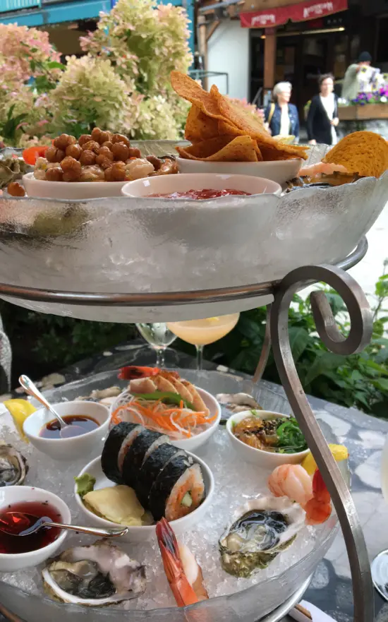After we were sufficiently blissed out, we headed back to the Village to do some shopping in the many boutiques along the pedestrian only Village Stroll. The day ended at Araxi Restaurant + Oyster Bar (110-4222 Village Square, Whistler) with their sumptuous two-tiered seafood tower that comes with oysters on the half shell, chilled prawns, wild smoked salmon, albacore tuna tataki, BC seafood ceviche, jellyfish and seaweed salad, and a spicy tuna roll.