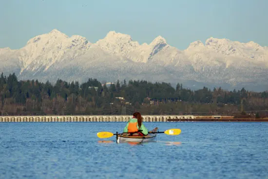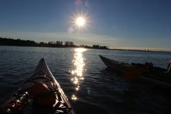 The change of seasons also brings a change of scenery and a whole new perspective. Recently, I launched from Crescent Beach to paddle the local waters. From the comfort of my cockpit, gazing across the sea, I found myself captivated by the snow-capped mountains towering in the distance. Gliding effortlessly across the calm ocean, I felt almost weightless. Rhythmically dipping my paddles in the water, I realized there was not a single motorized vessel in sight. It was magical and certainly a unique experience. As the sun began to set, the colours in the sky seemed supercharged, somehow enhanced. Feeling the cold, and knowing the daylight was quickly diminishing I pointed my bow in the direction of home. Perhaps a mug of hot chocolate would be waiting?
