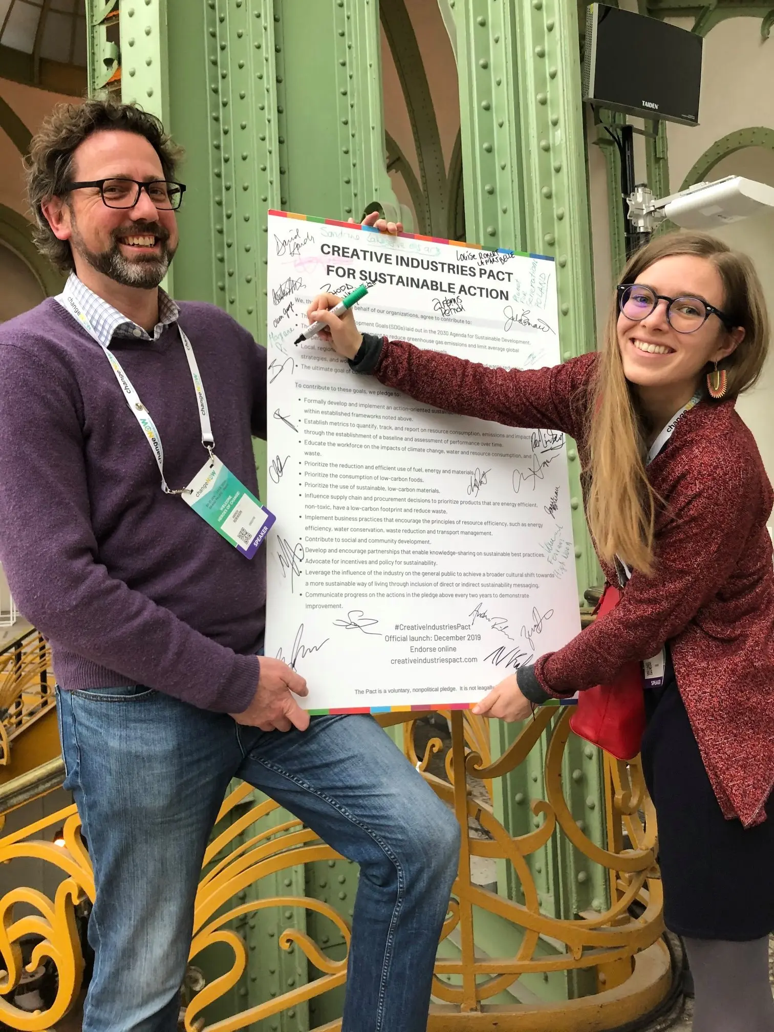 She names Vancouver Film Studios as a case study of a company that has become a “leader in the built environment space” through their extensive sustainability strategies, which include B Corporation certification, Climate Smart certification, and the signing of The Creative Industries Pact for Sustainable Action.