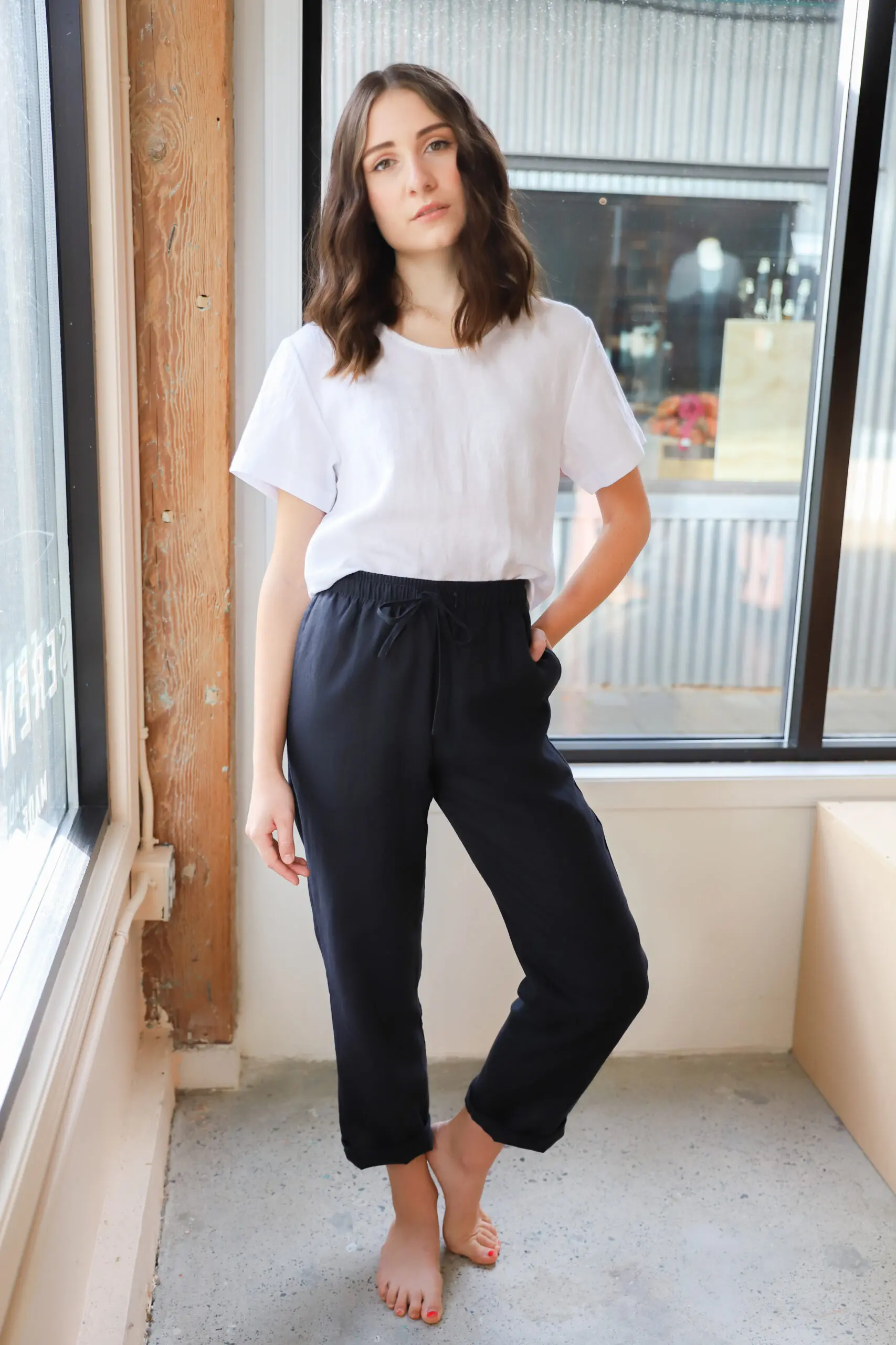 They primarily use linen to make their clothing because of its eco-friendly qualities. “We started with linen because it’s grown from the flax plant, which requires a lot less water and pesticides than other plants,” Cresswell explains. Linen is great for durability and is biodegradable, unlike many synthetic materials.