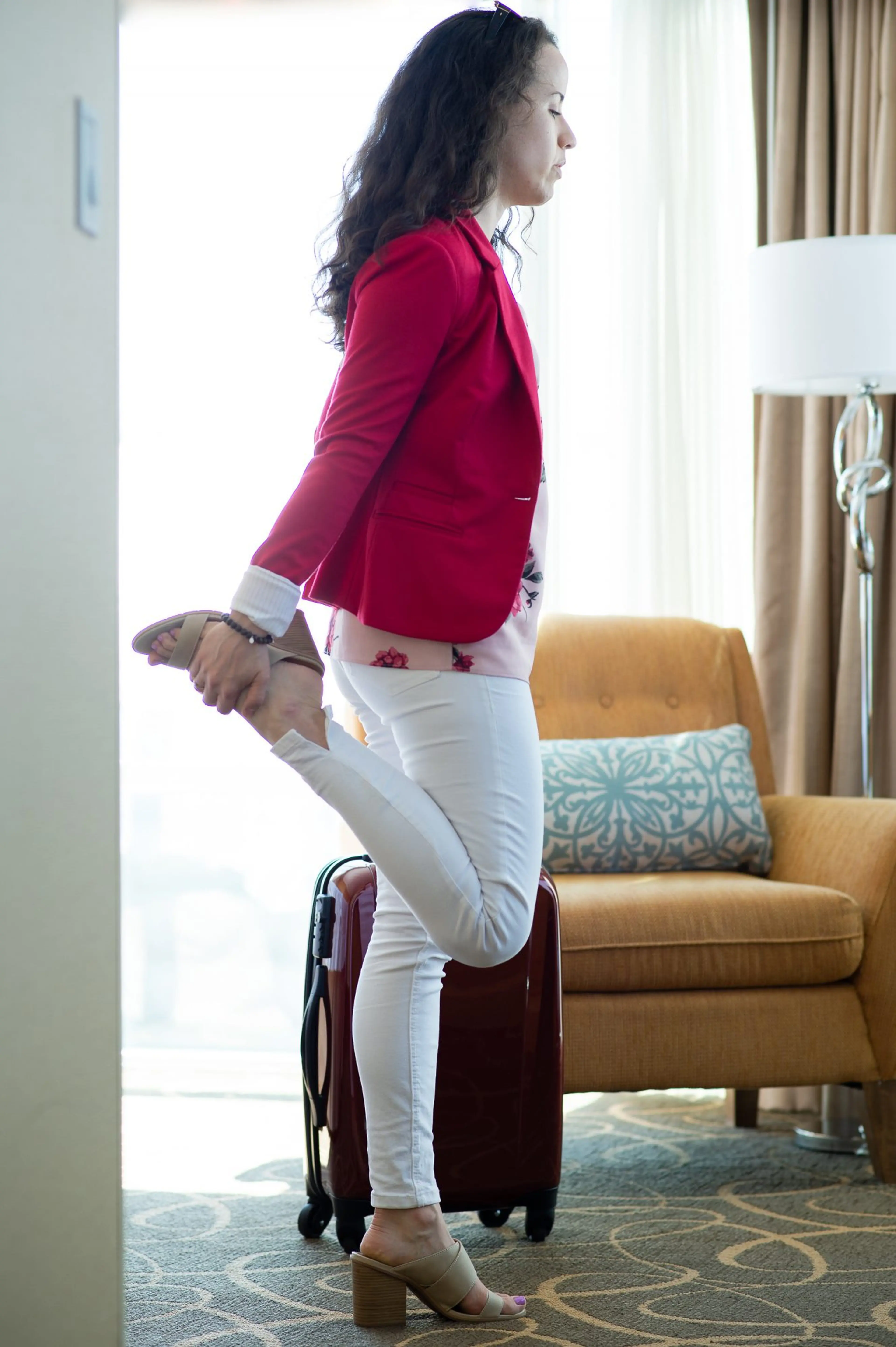 So what can you do about it? One word: stretch. You might not have time to get to a yoga class at one of Vancouver’s many fantastic studios, so here are some easy and effective stretches* you can do in your hotel room. They are also great to do after exploring and walking around all day.)